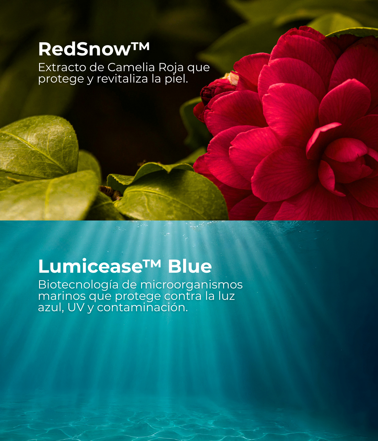 Lumicease™ Blue: Biotecnología obtenida de microorganismos marinos. Protege contra la luz azul, UV y contaminación.