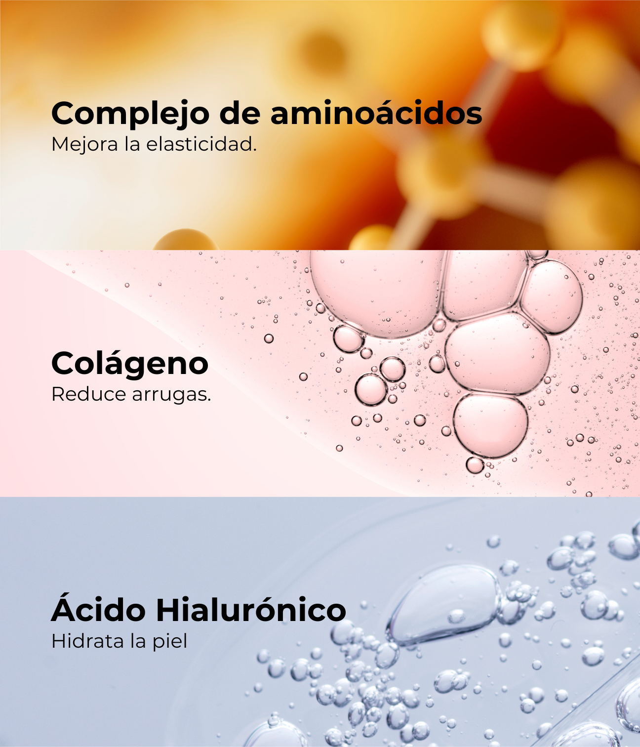 Solución que ayuda a reducir arrugas, mejora la elasticidad y aclara la piel a través de aminoácidos y péptidos.